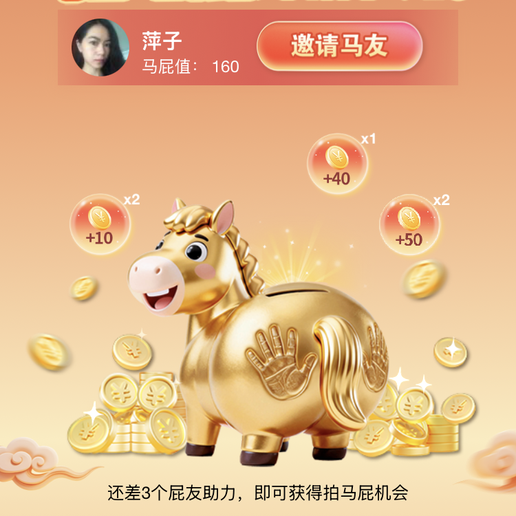 微信新年拍马屁互动,每人可拍x次马屁,每3个好友助力可增加1次机会