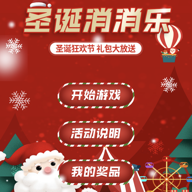 圣诞消消乐闯关,闯关成功达到x分可参与大转盘抽奖